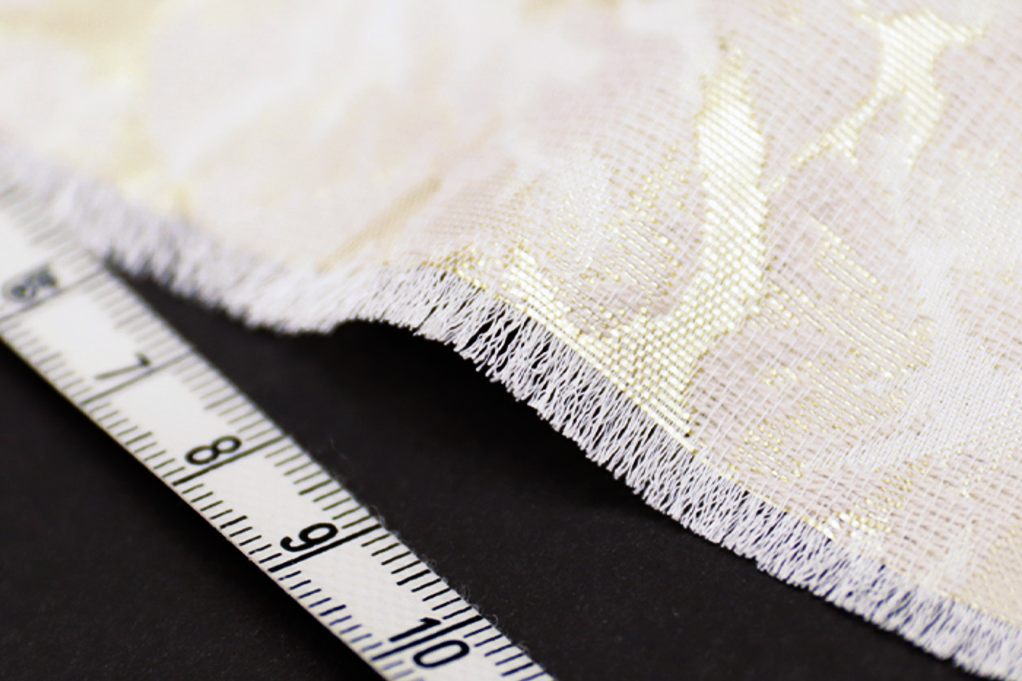 ミクロン単位の極細の経糸(たていと)を均等に織り込む技術により、 まるで透き通るような軽やかさと、上品な光沢を持つツイード生地に仕上がります。